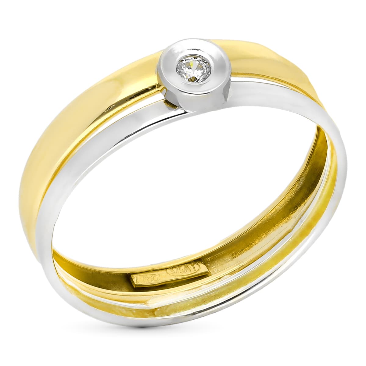 9K SORTIJA ORO BICOLOR BANDAS CON CHATON Y CRICONITA. ANCHO 5 MM