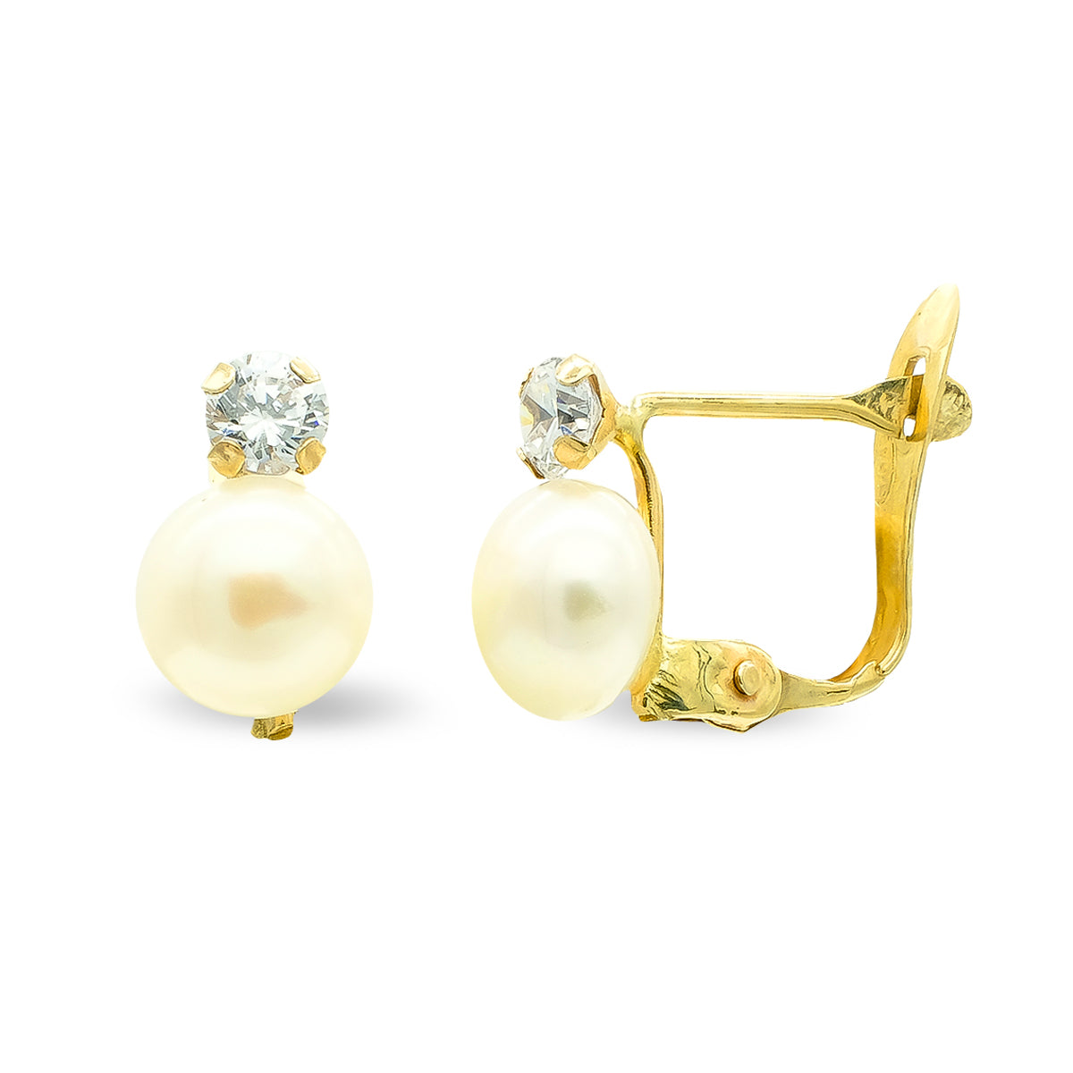 9K PENDIENTES PERLA 6 MM CIRCONITA CIERRE CATALAN