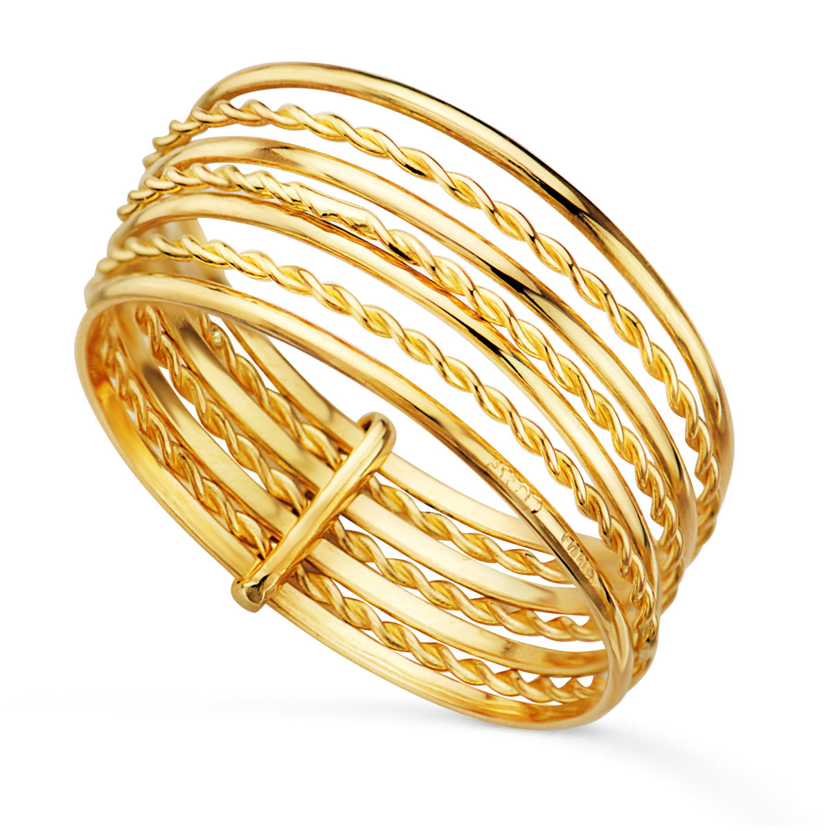 9K SORTIJA ORO AMARILLO SEMANARIO 7 HILOS LISOS Y TRENZADOS