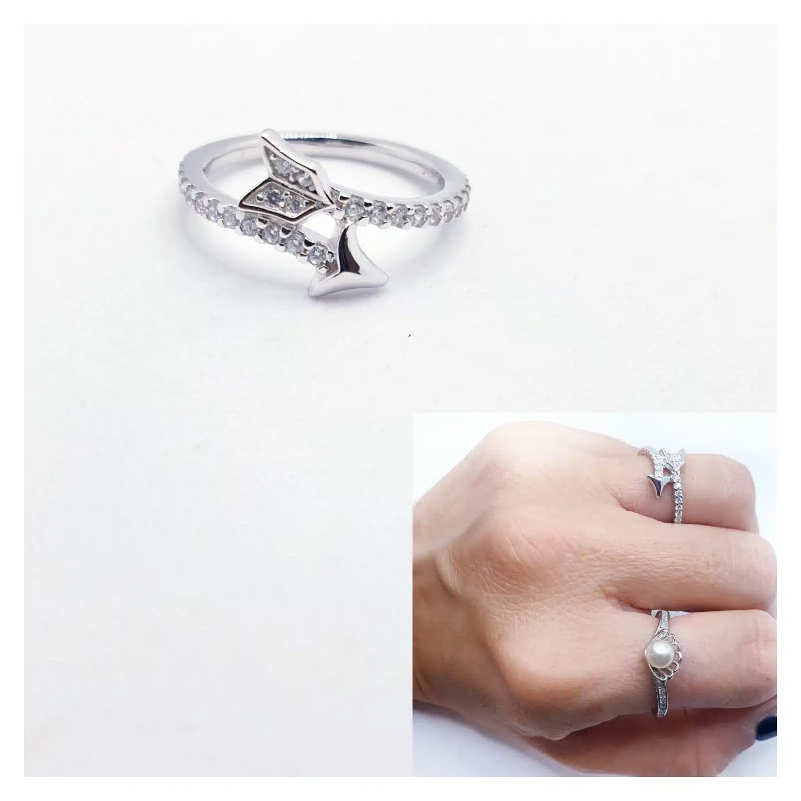 Anillo ajustable a una talla más y menos, en plata de ley con circonitas.