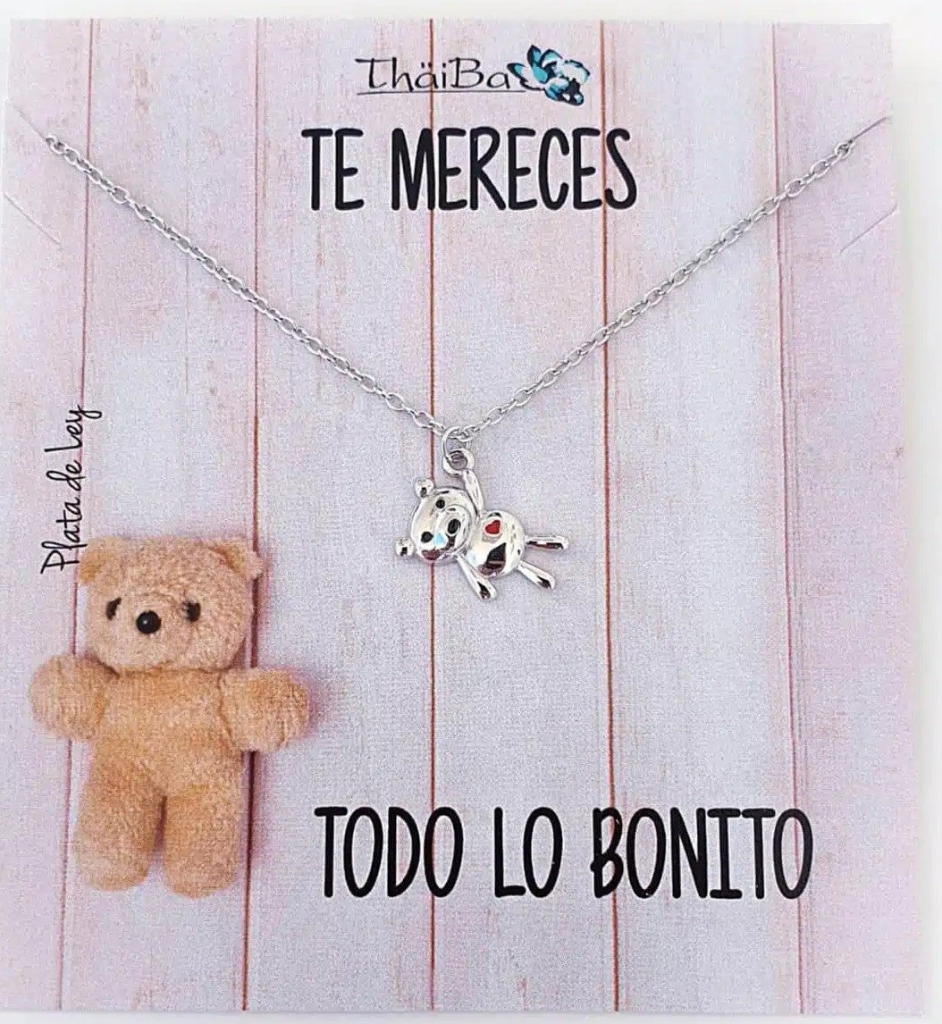 Collar con bonito oso pequeño, para aquellas personas que se merecen todo lo bonito. Plata de ley con cadena extensible.