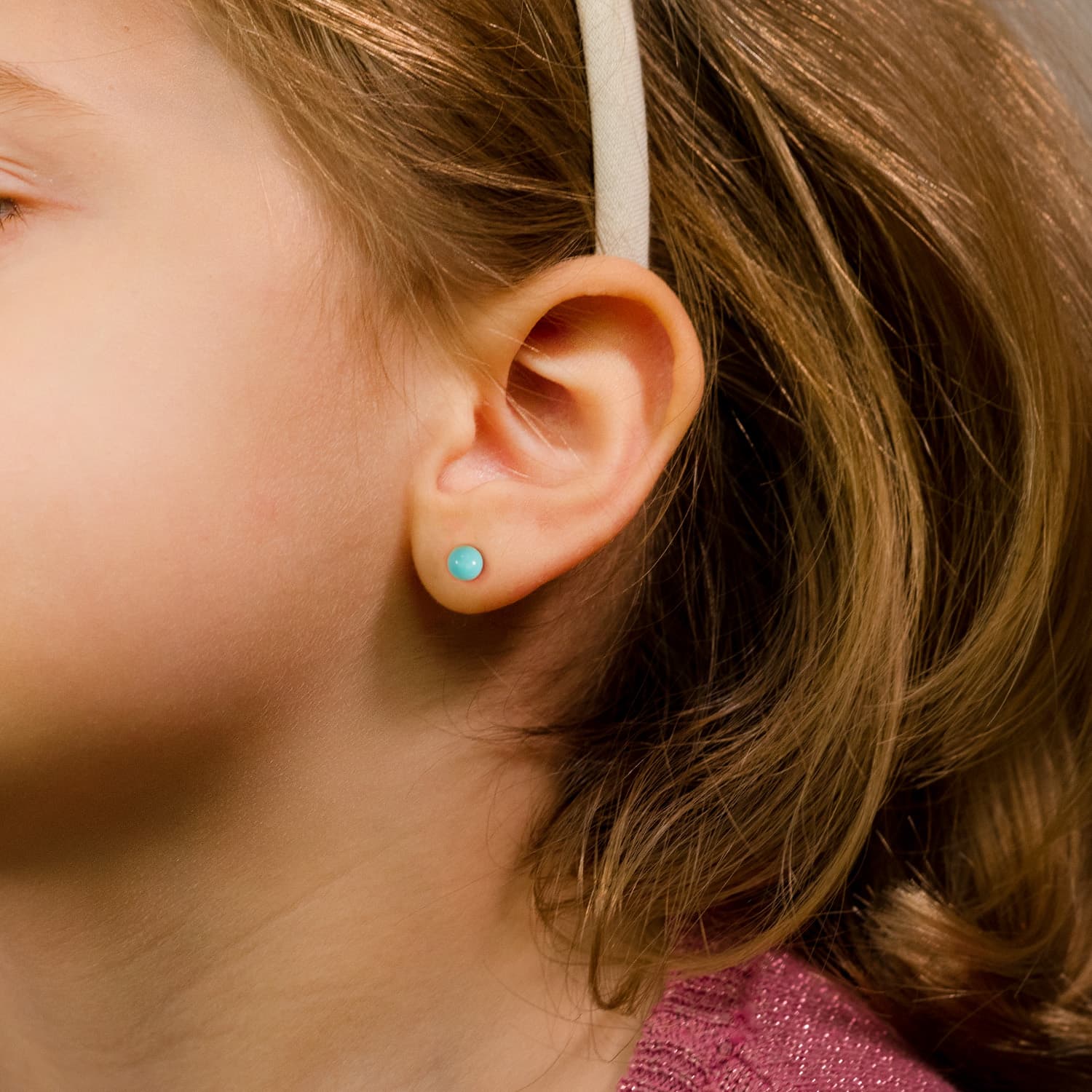 18K PENDIENTES ORO AMARILLO TURQUESA CON CASQUILLA. MEDIDA: 5 MM. CIERRE TUERCA