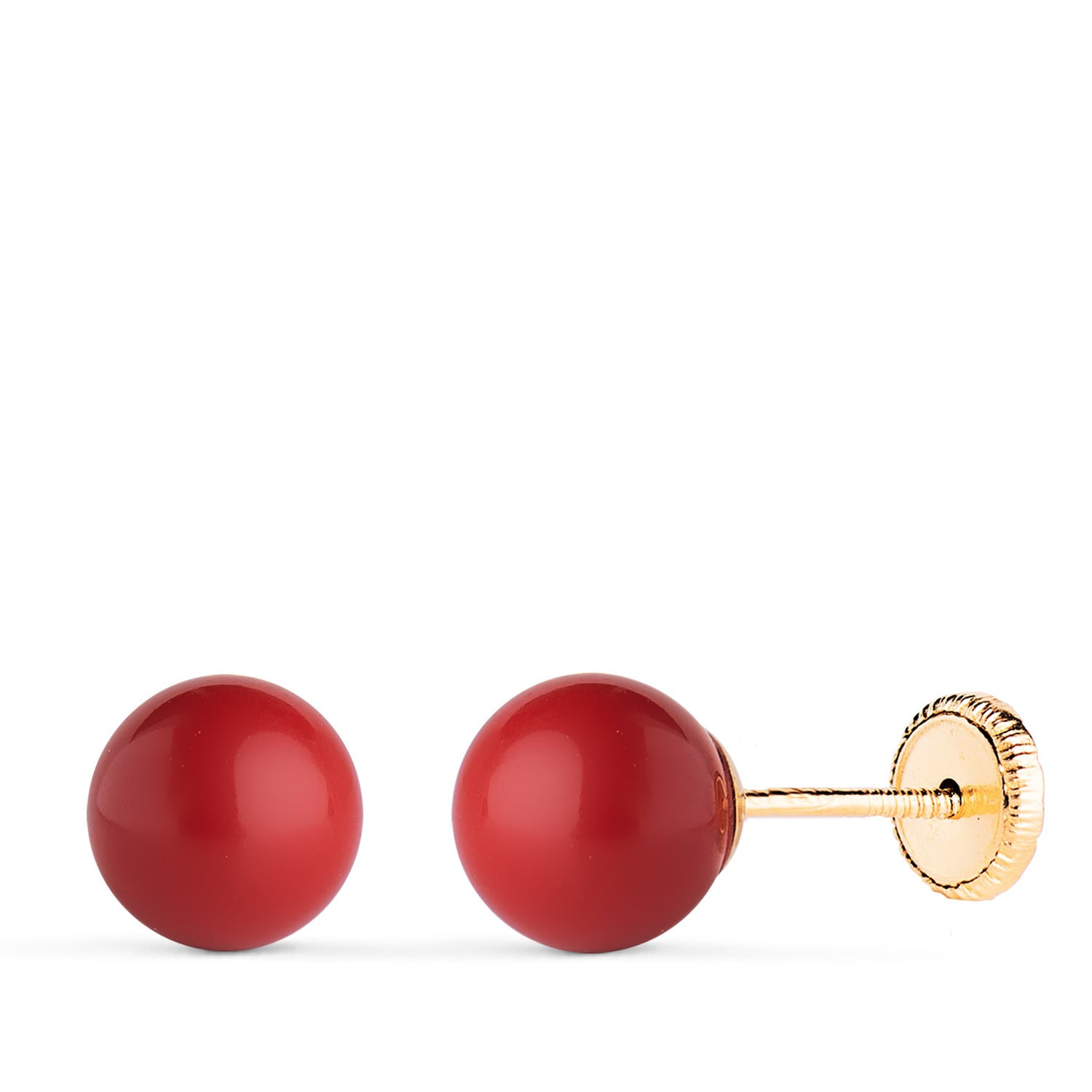 METAL: ORO AMARILLO DE 18K / PESO: 0.37 GRAMOS / PIEDRAS: CORAL / TIPO DE CIERRE: TUERCA