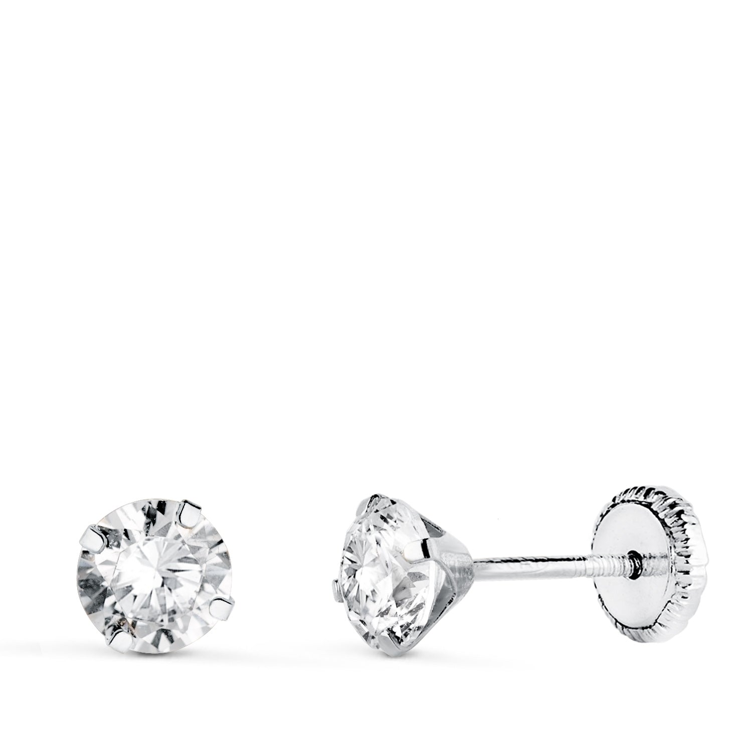 18K PENDIENTES ORO BLANCO 4 GARRAS CON CIRCONITA. ANCHO: 5 MM CIERRE TUERCA