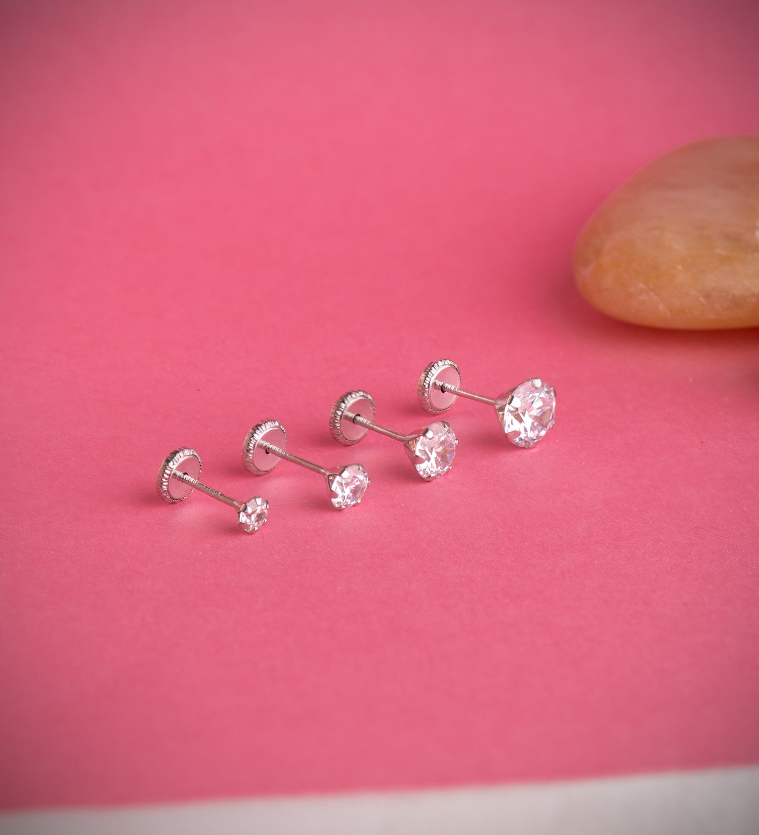 18K PENDIENTES ORO BLANCO 6 GARRAS CON CIRCONITA. ANCHO: 5 MM CIERRE TUERCA
