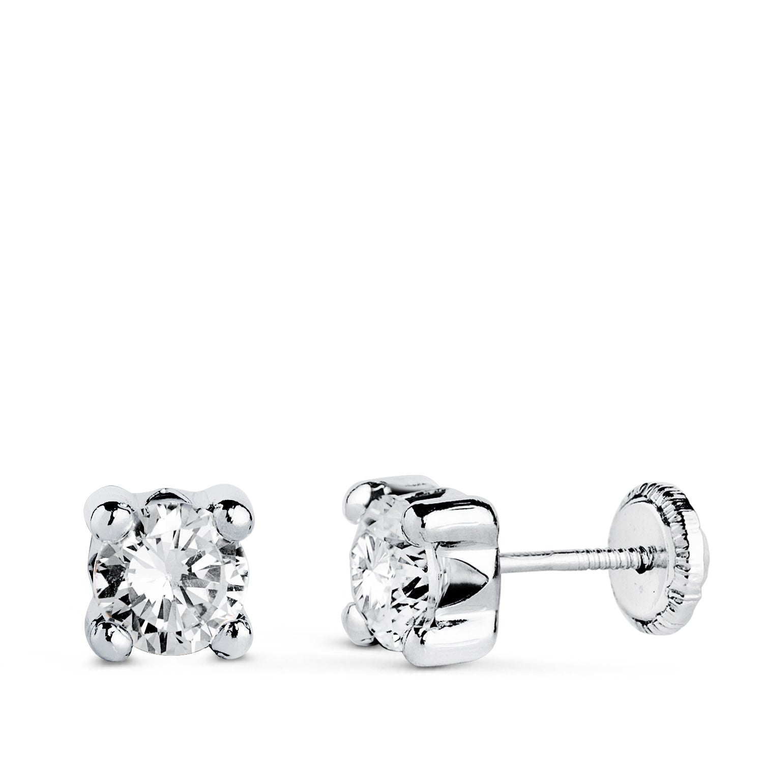 18K PENDIENTES ORO BLANCO CIRCONITA 5MM CON 4 GARRAS. ANCHO: 5,5 MM. CIERRE TUERCA