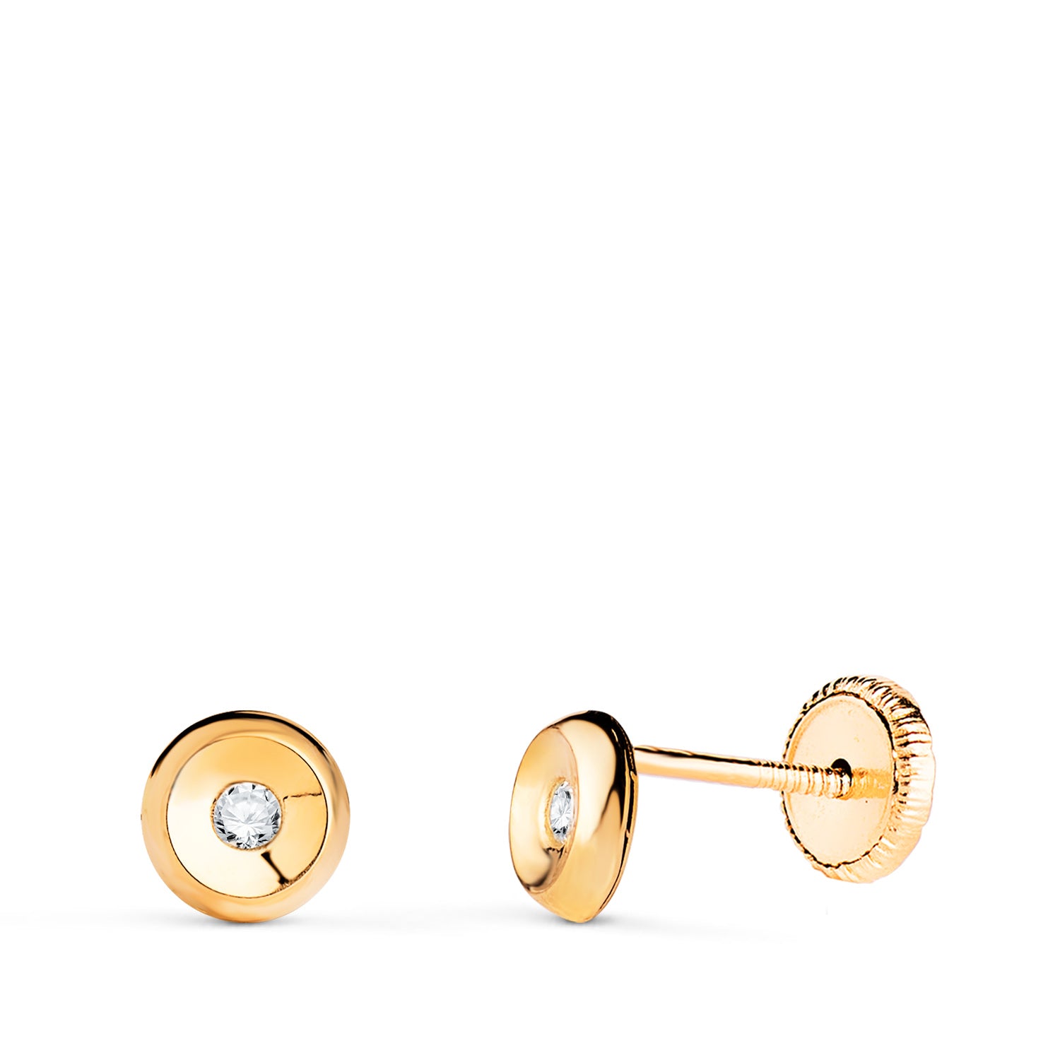18K PENDIENTES ORO AMARILLO REDONDOS CON CIRCONITA. MEDIDA: 5 MM. CIERRE TUERCA
