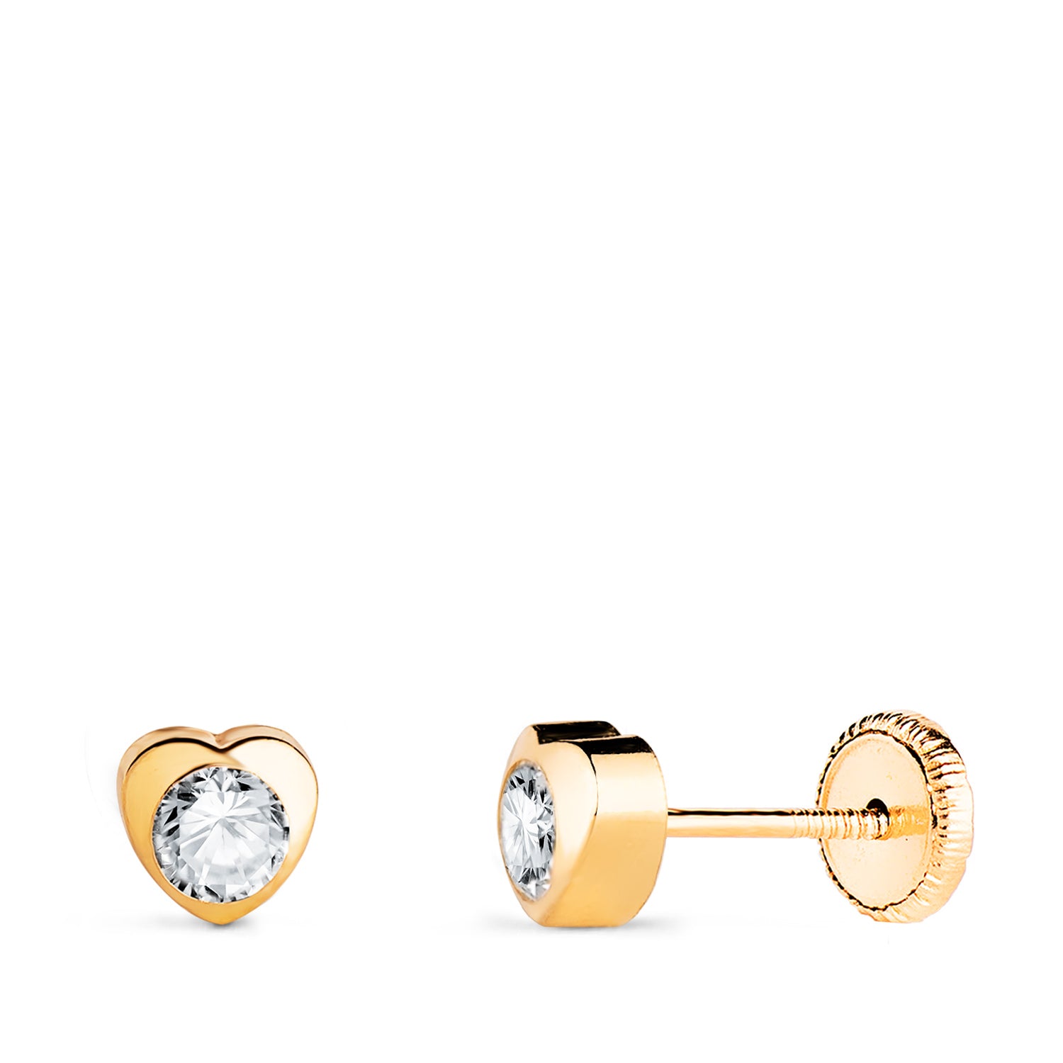 18K PENDIENTES ORO AMARILLO CORAZON CON CIRCONITA. MEDIDA: 5 X 5 MM CIERRE TUERCA