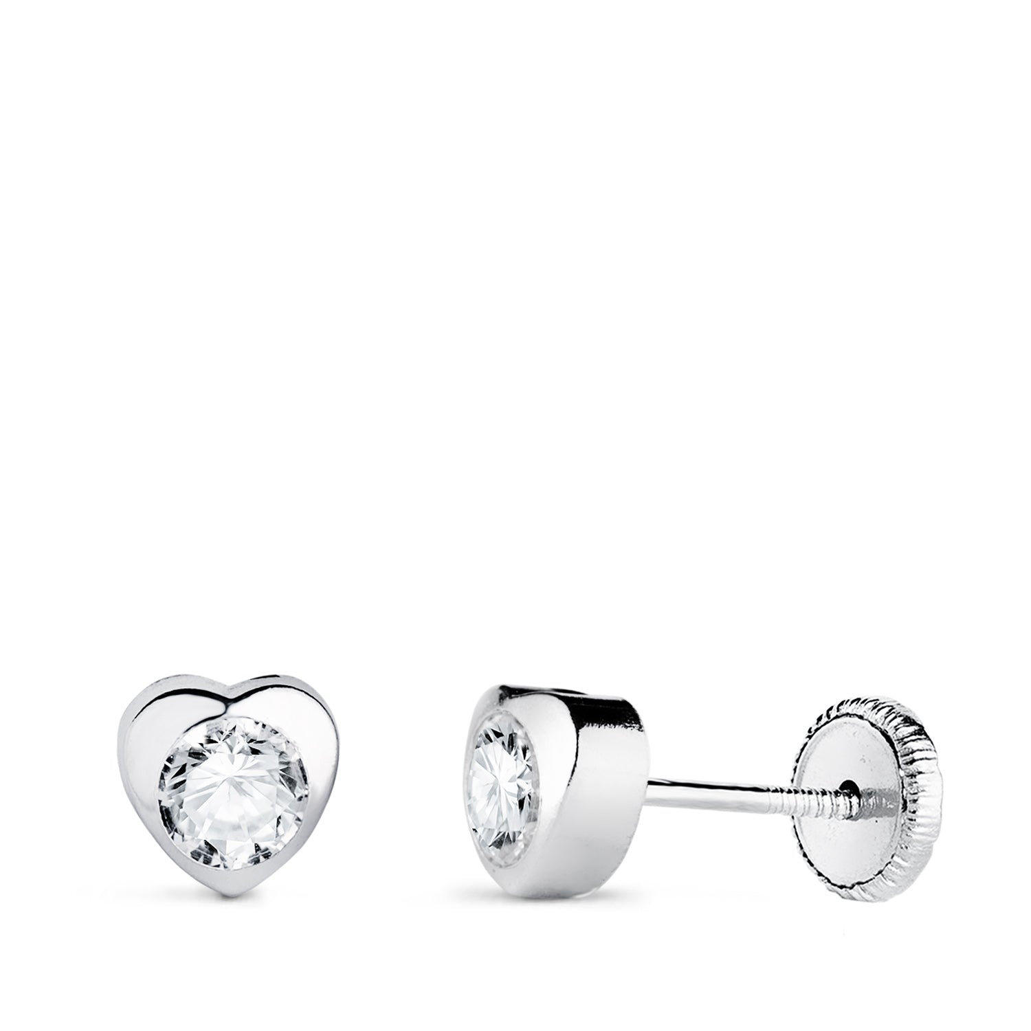 18K PENDIENTES ORO BLANCO CORAZON CON CIRCONITA. MEDIDA: 5 X 5 MM CIERRE TUERCA