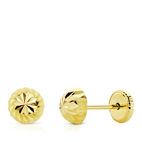 18K PENDIENTES ORO AMARILLO MEDIA BOLA TALLADA 7 MM CIERRE TUERCA