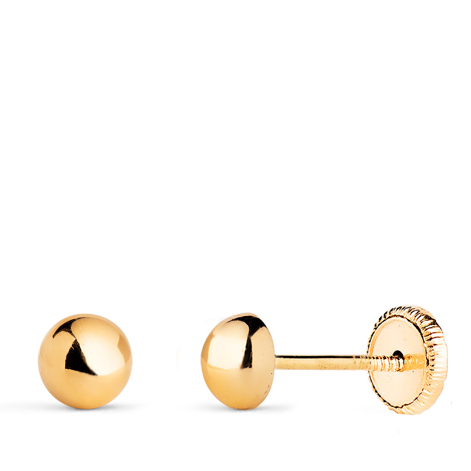 18K PENDIENTES ORO AMARILLO MEDIA BOLA LISA HUECA. ANCHO: 5 MM. CIERRE TUERCA