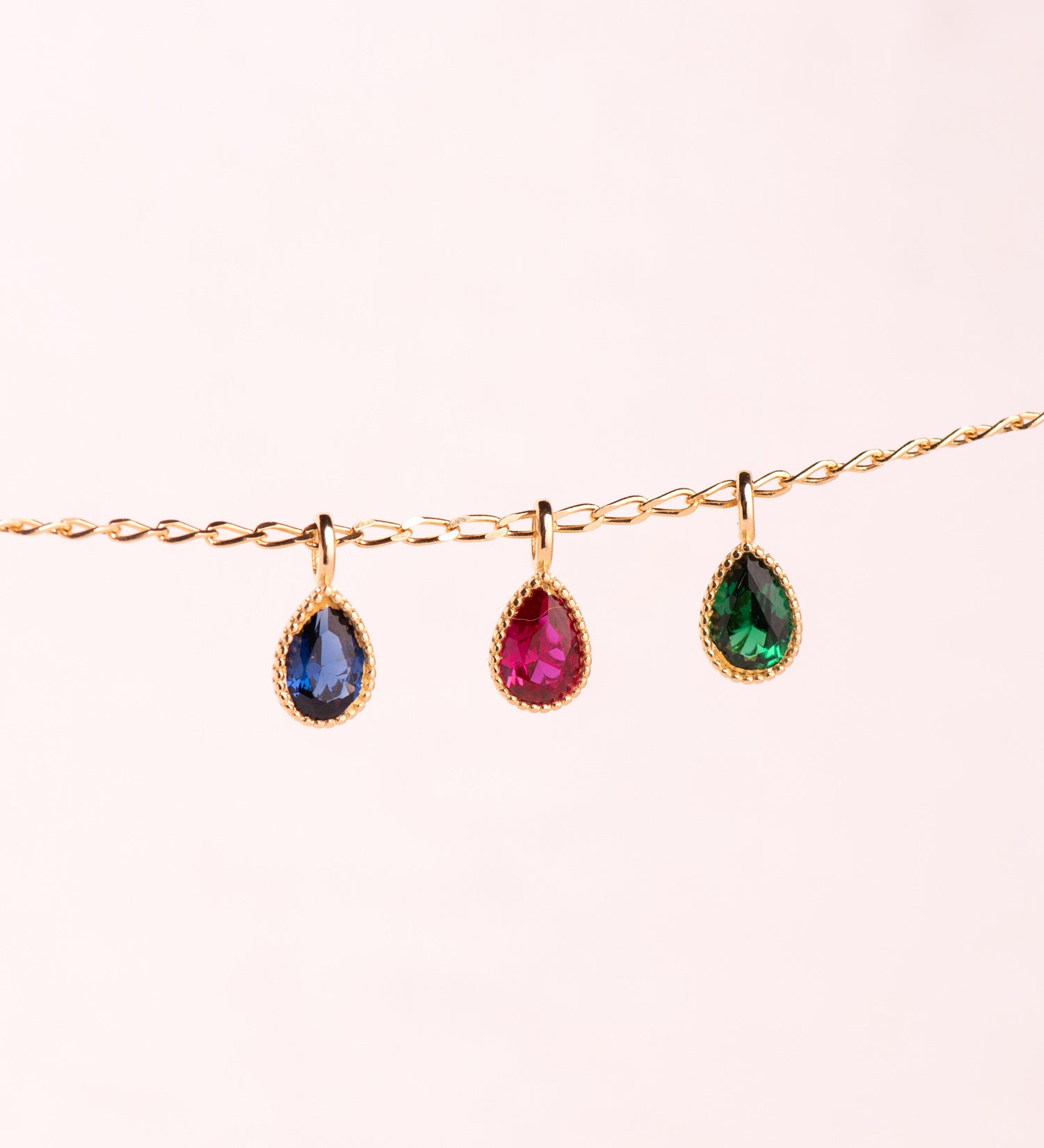 18K COLGANTE ORO AMARILLO GOTA PIEDRA AZUL BORDES BOLITAS. MEDIDA: 11 X 5MM