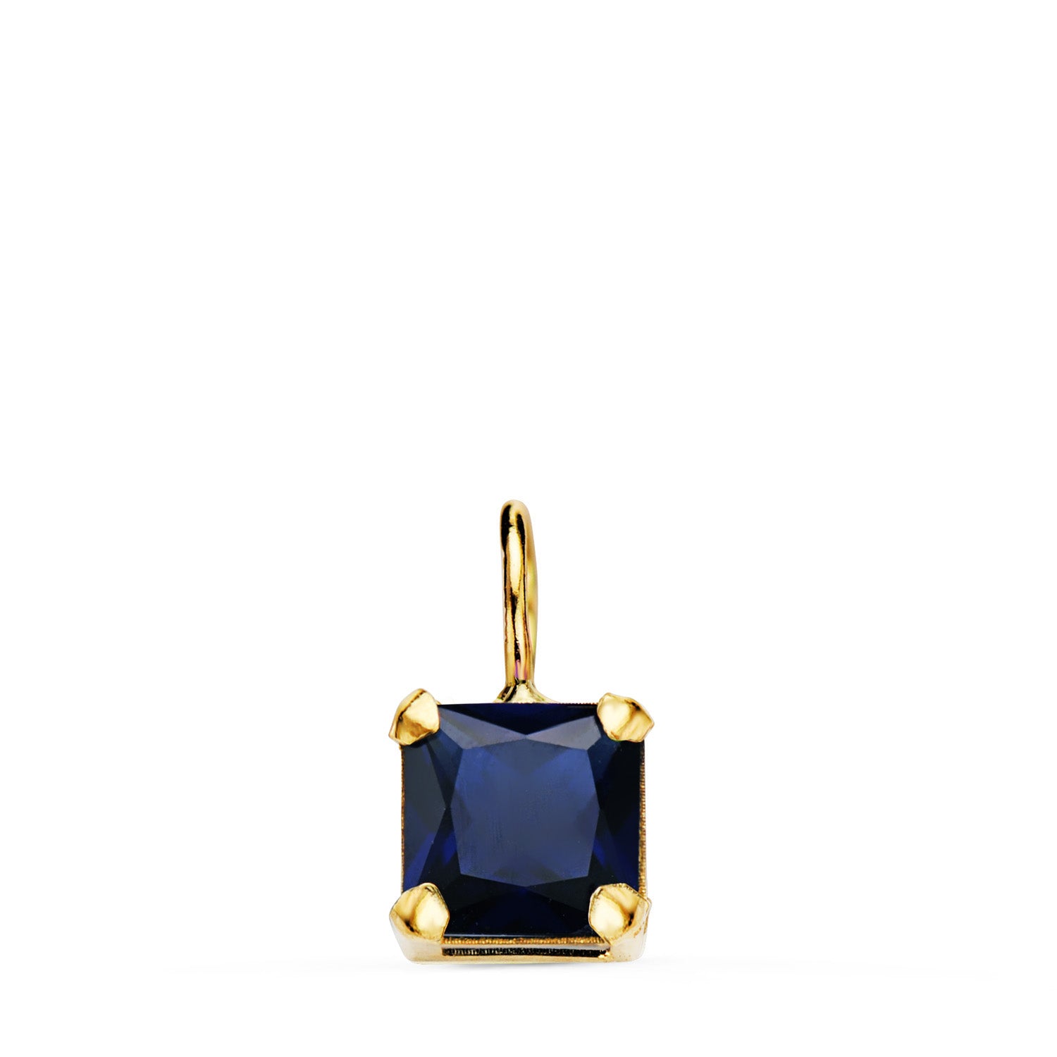 18K COLGANTE ORO AMARILLO CUADRADO CON GARRAS Y PIEDRA COLOR AZUL DE 6,5 X 6,5 MM.
