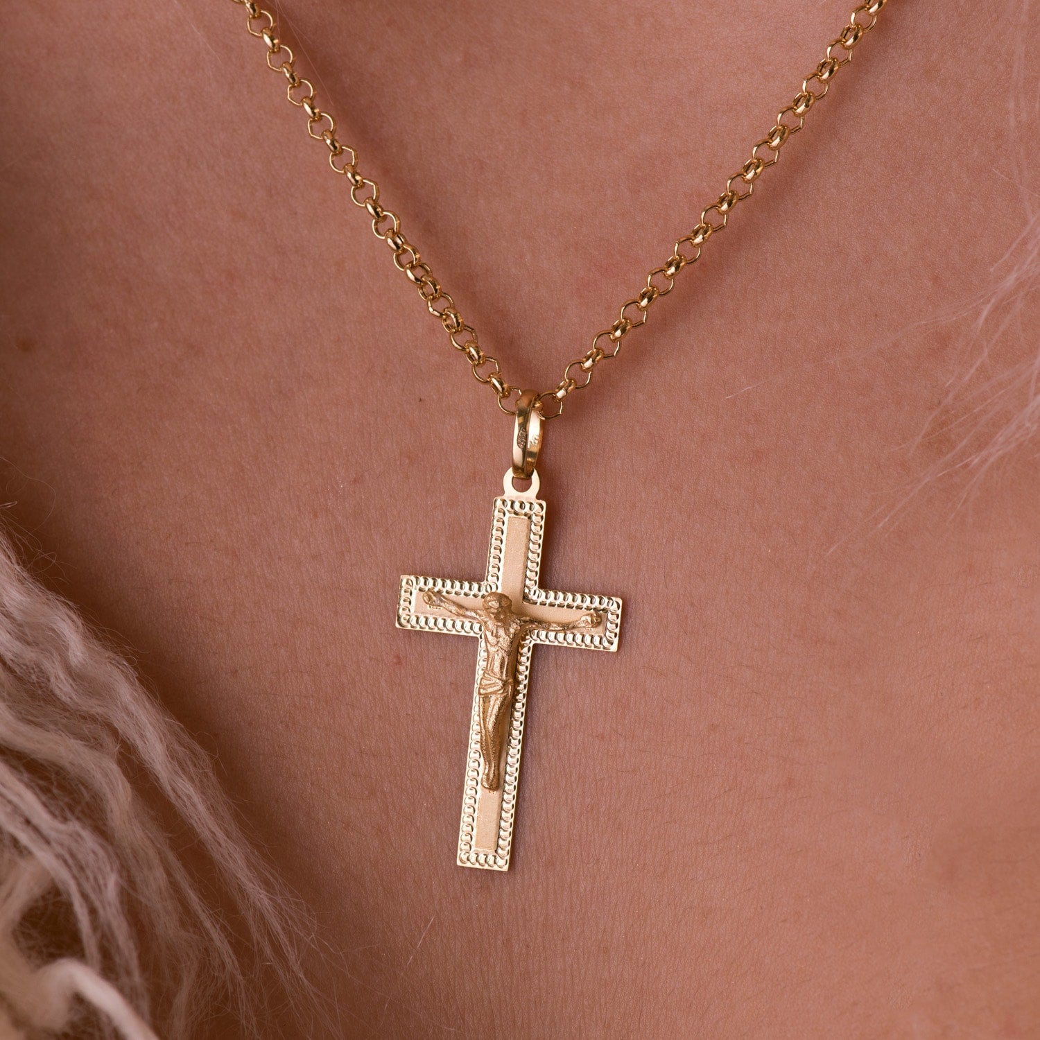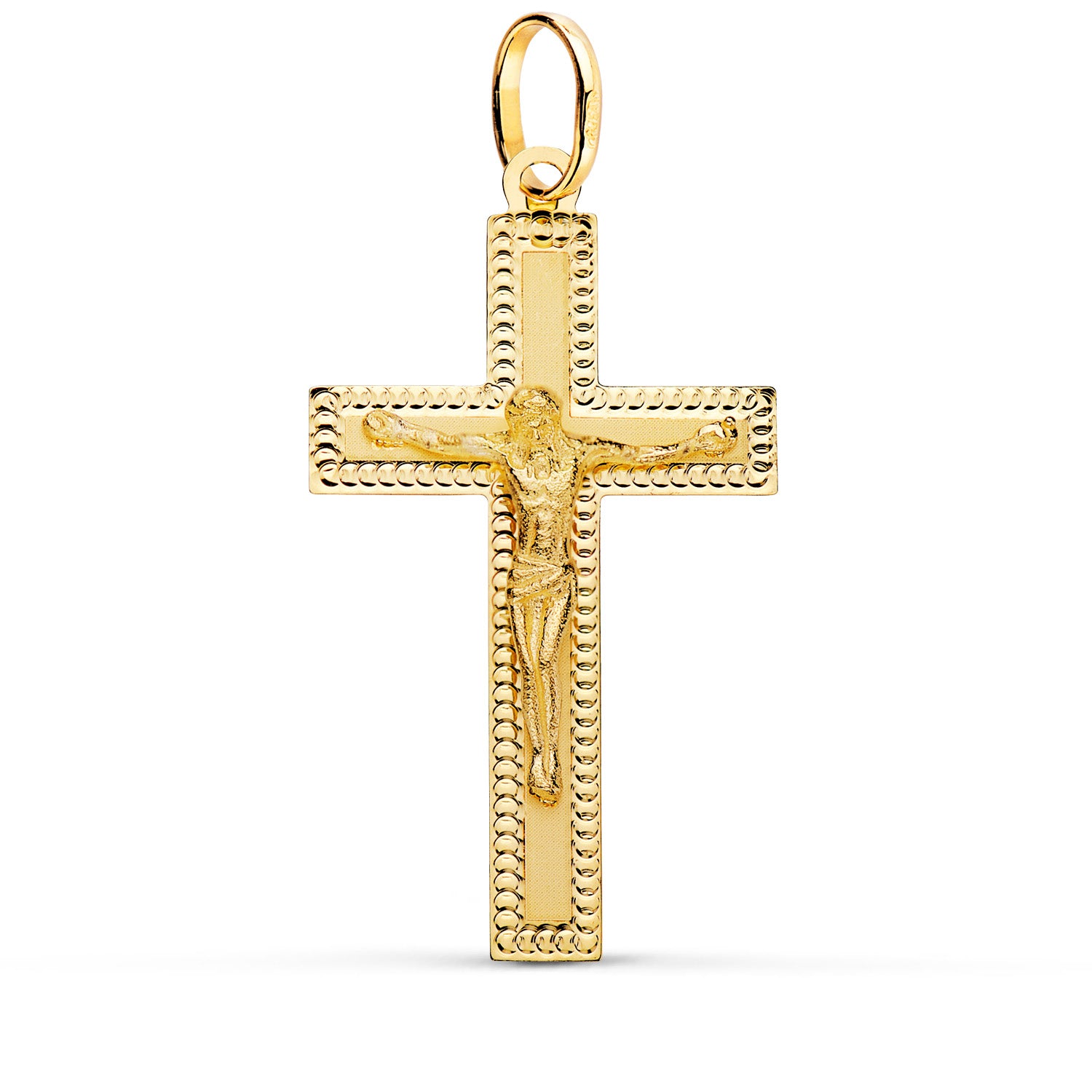 18K CRUZ ORO AMARILLO CON CRISTO TALLADA 35X20 MM