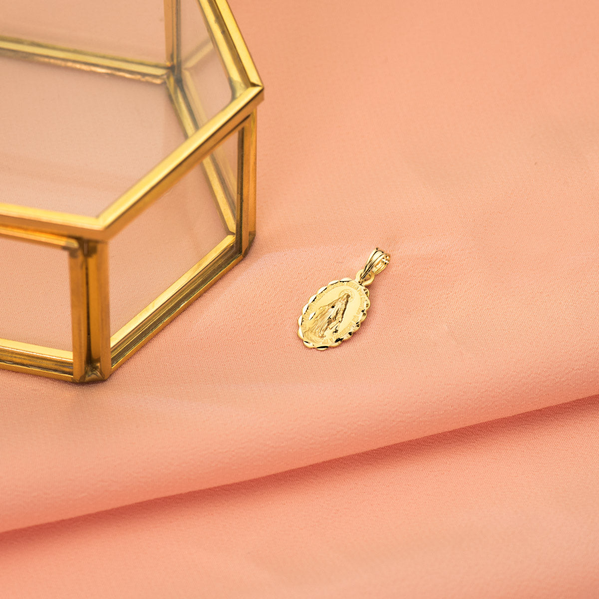 18K MEDALLA ORO AMARILLO VIRGEN DE LA MILAGROSA OVAL TALLADA 15X10 MM