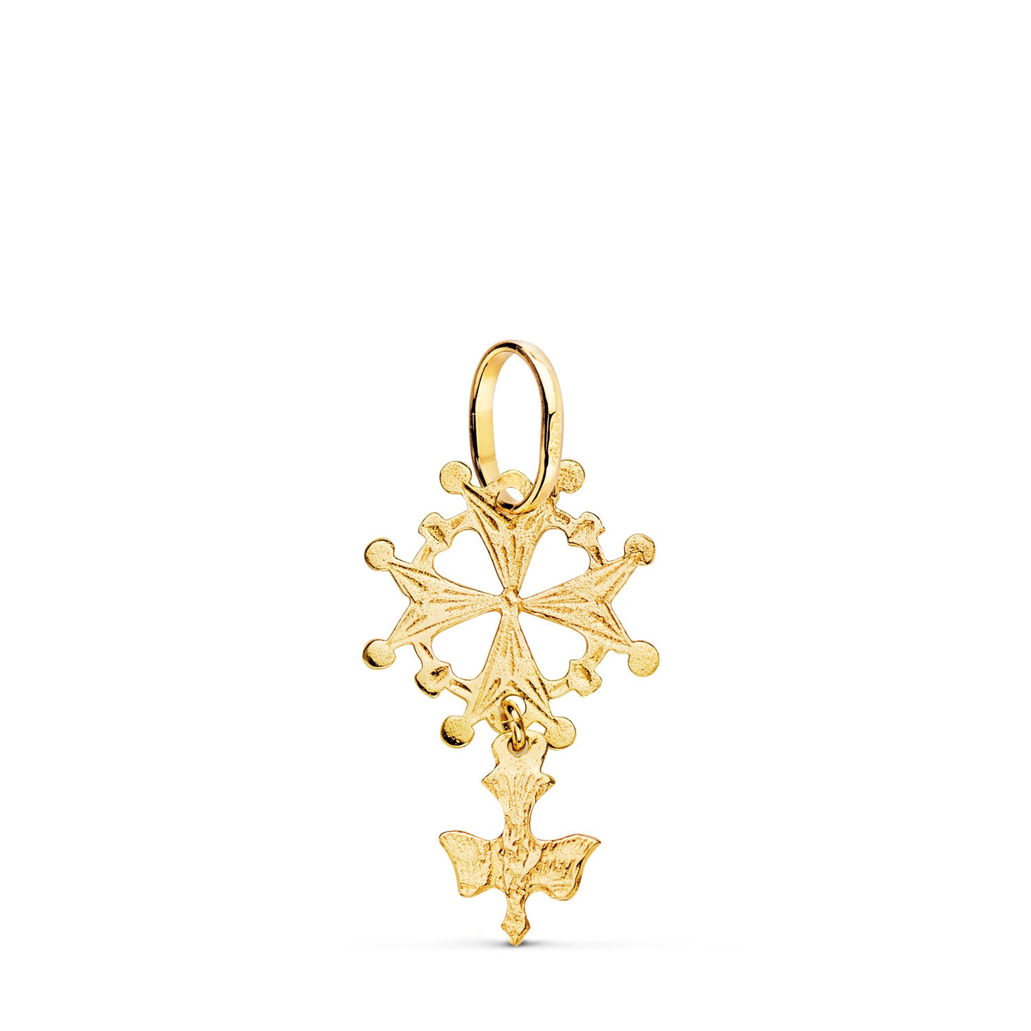 18K CRUZ DE HUGUENOTTE ORO AMARILLO CON PALOMA. 24 X 14 MM