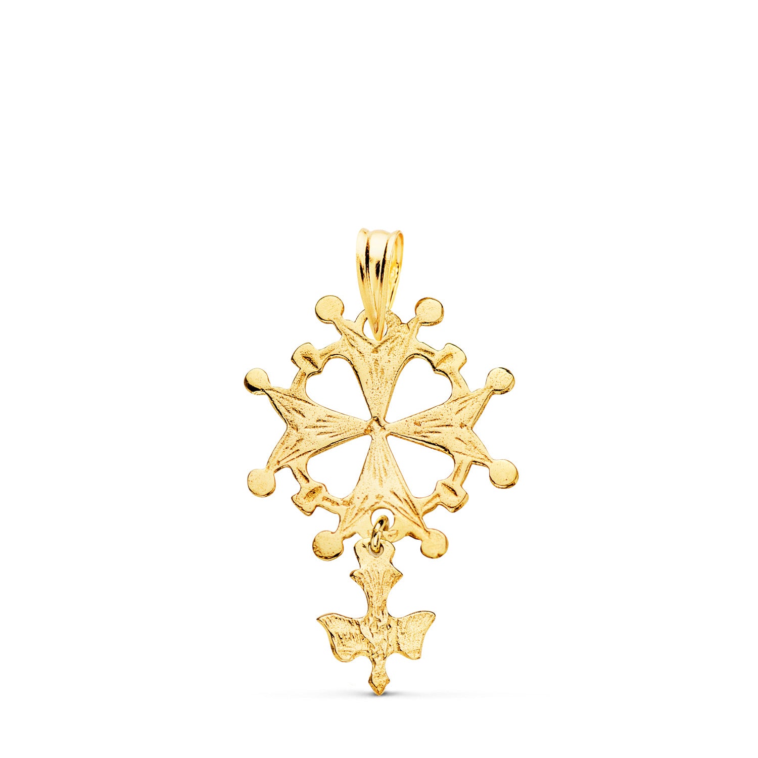 18K CRUZ DE HUGUENOTTE ORO AMARILLO CON PALOMA. 28 X 17 MM