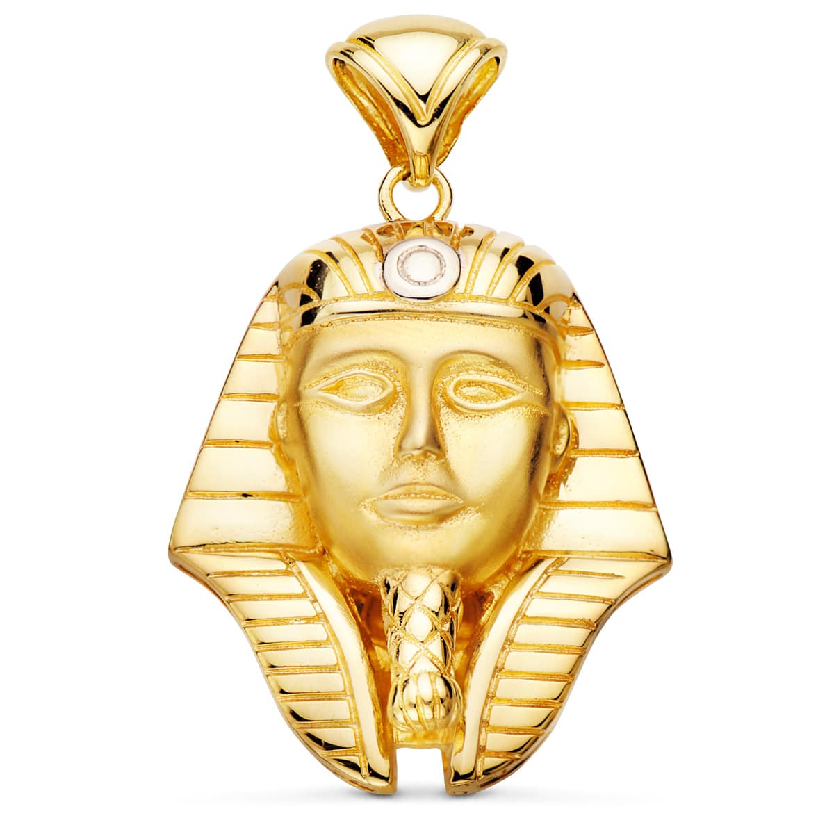 18K COLGANTE ORO BICOLOR TUTANKAMON BRILLO 32X28 MM
