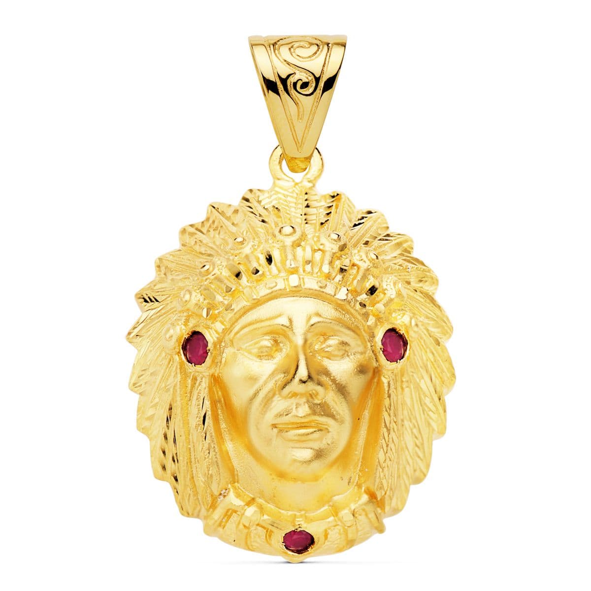 18K COLGANTE COLGANTE INDIO AMERICANO ORO AMARILLO. 33 X 28 MM