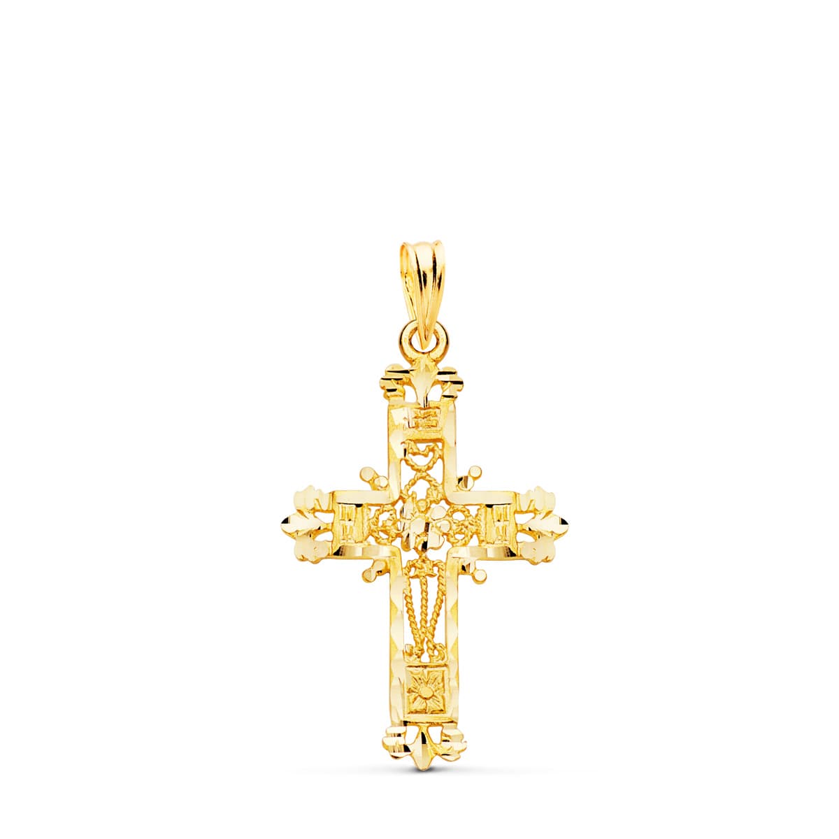18K CRUZ ORO AMARILLO FILIGRANA BORDES TALLADOS. 29X19 MM