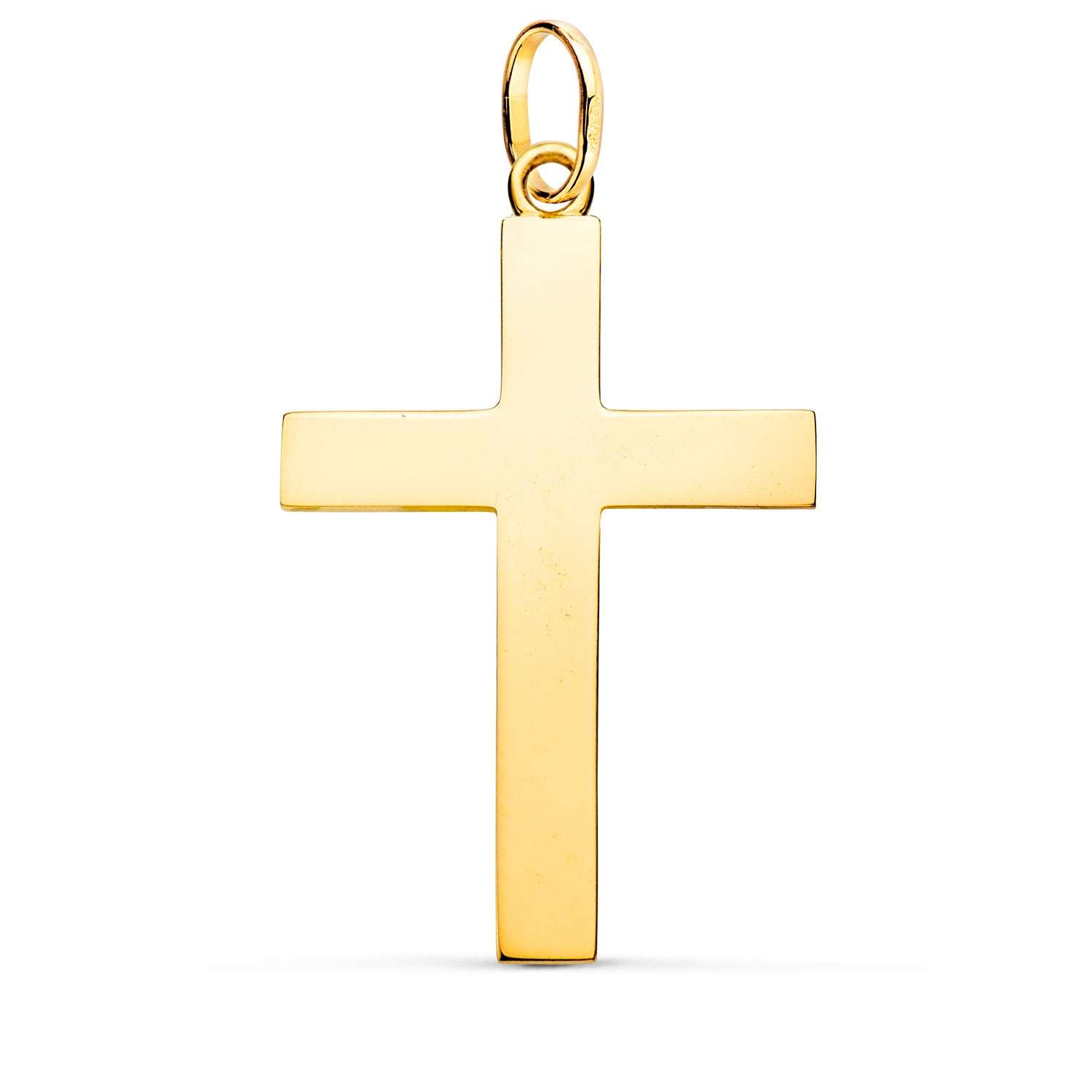 18K CRUZ ORO AMARILLO LISA MACIZA PALO RECTANGULAR BRILLO 38 X 24 MM