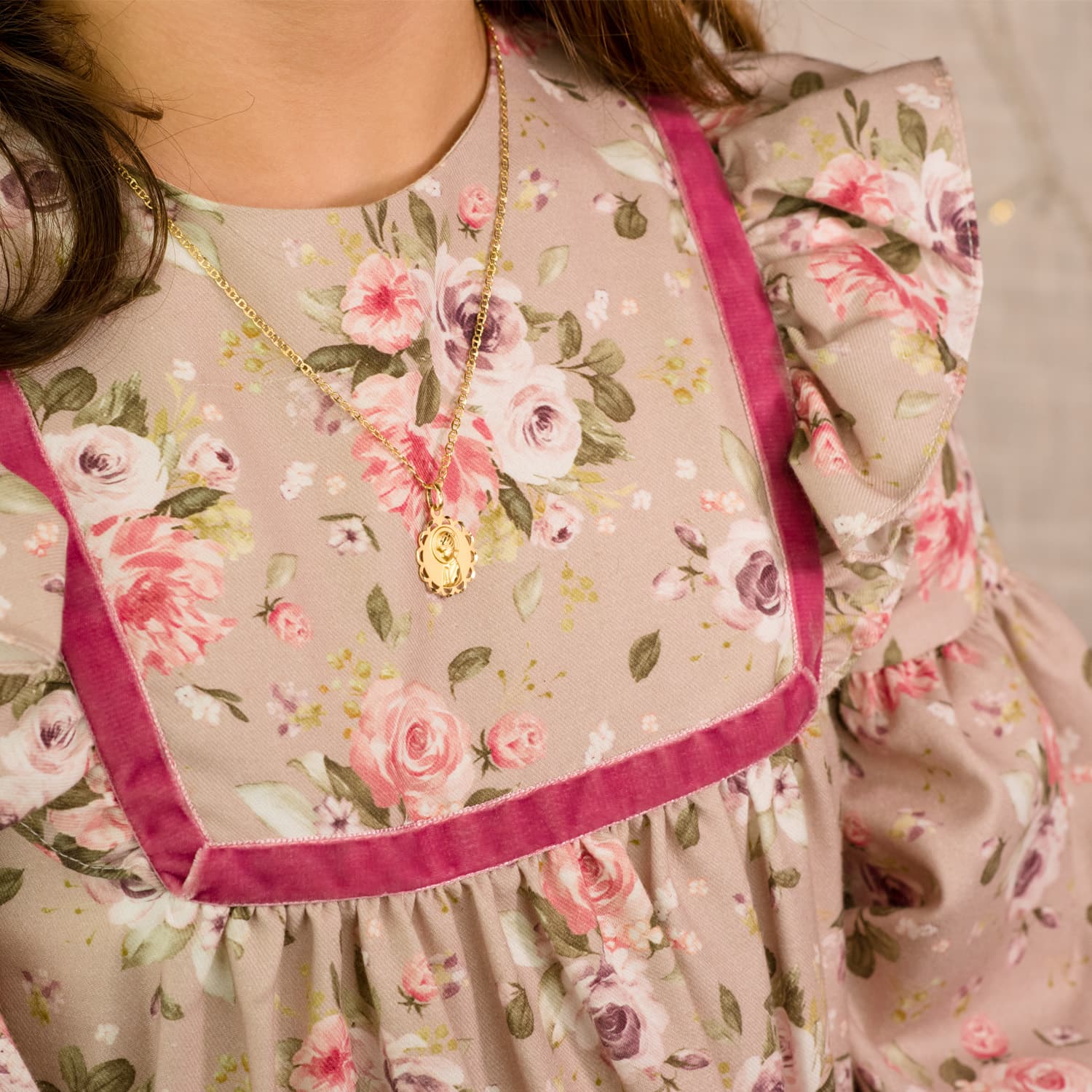 18K MEDALLA ORO AMARILLO PANDERETA VIRGEN NIÑA PERFIL MATIZADA Y CALADA 19 MM