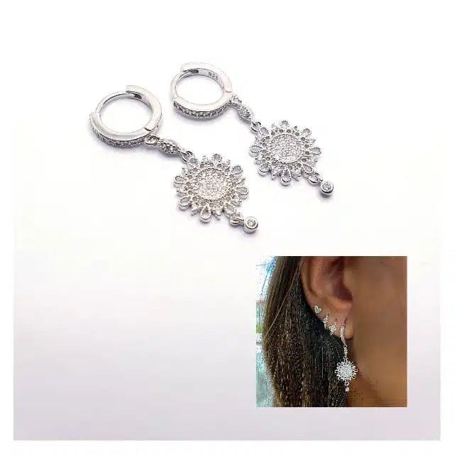 Pendiente labrado circonitas y plata de ley, alta joyería.