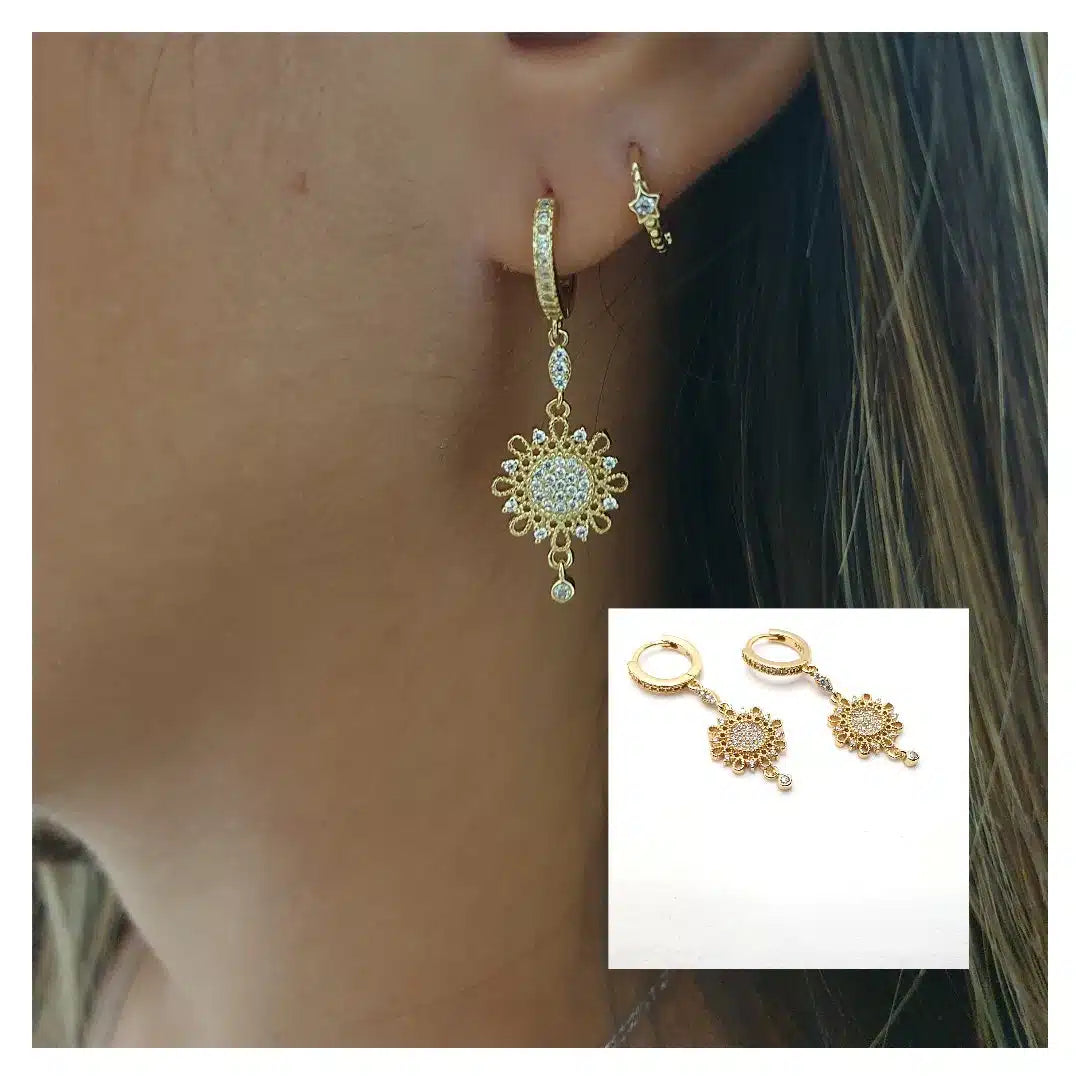 Pendiente labrado en plata de ley bañada en oro 14 quilates, alta joyería.