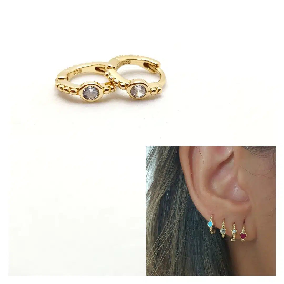 Pendiente mini ideal para segundos agujeros en plata de ley 6 mm. con baño de oro 14 quilates ( precio 2 unidades )