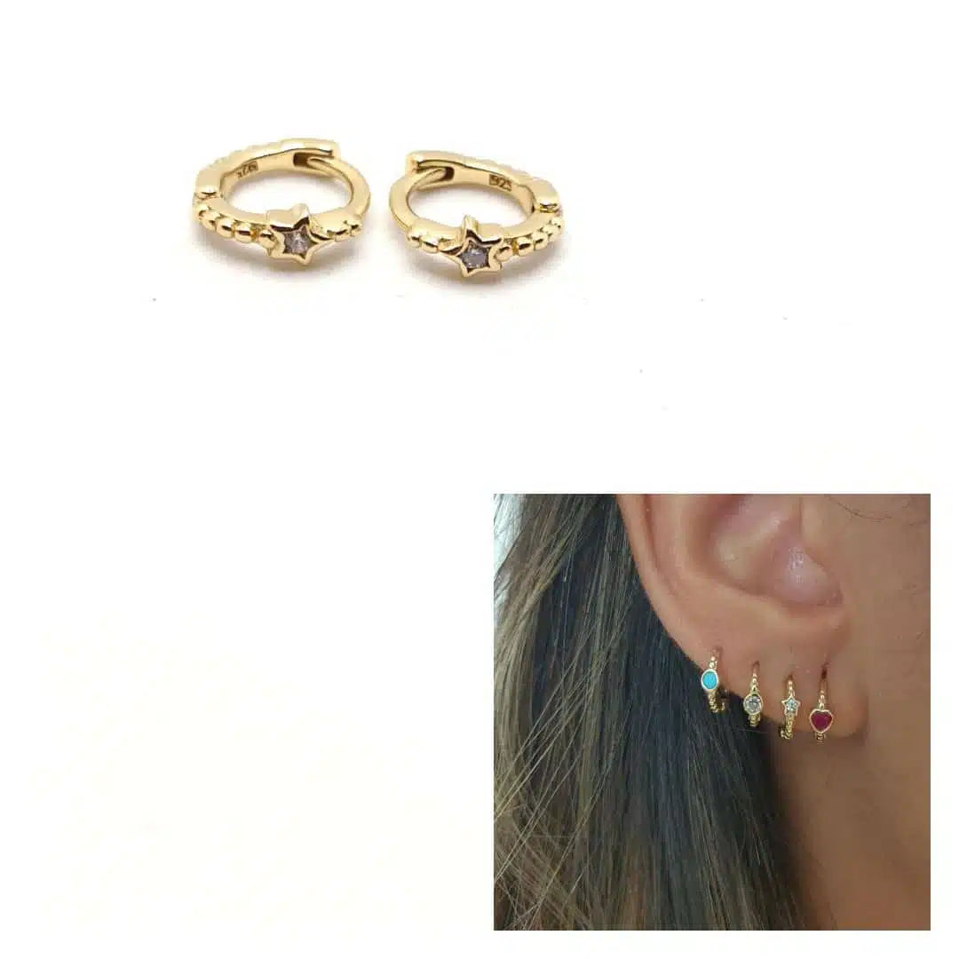 Pendiente mini ideal para segundos agujeros en plata de ley bañada en oro 14 quilates a 6 mm. ( precio 2 unidades )