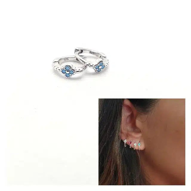 Pendiente mini arito flor turquesa