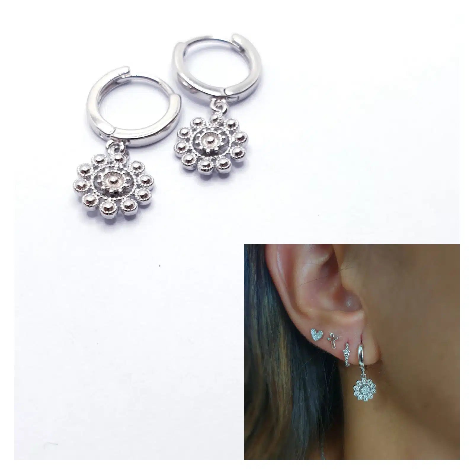 Pendiente forma circular rosetón en plata de ley