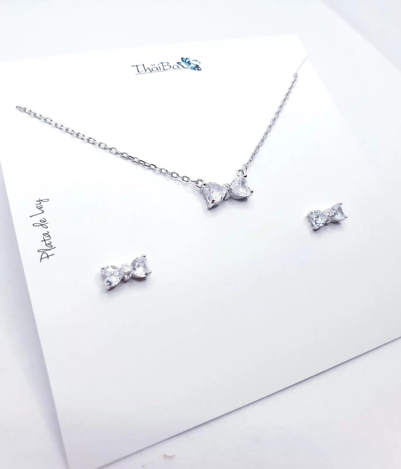 Set plata de ley y circonita blanca. Collar cadena extensible y pendientes.